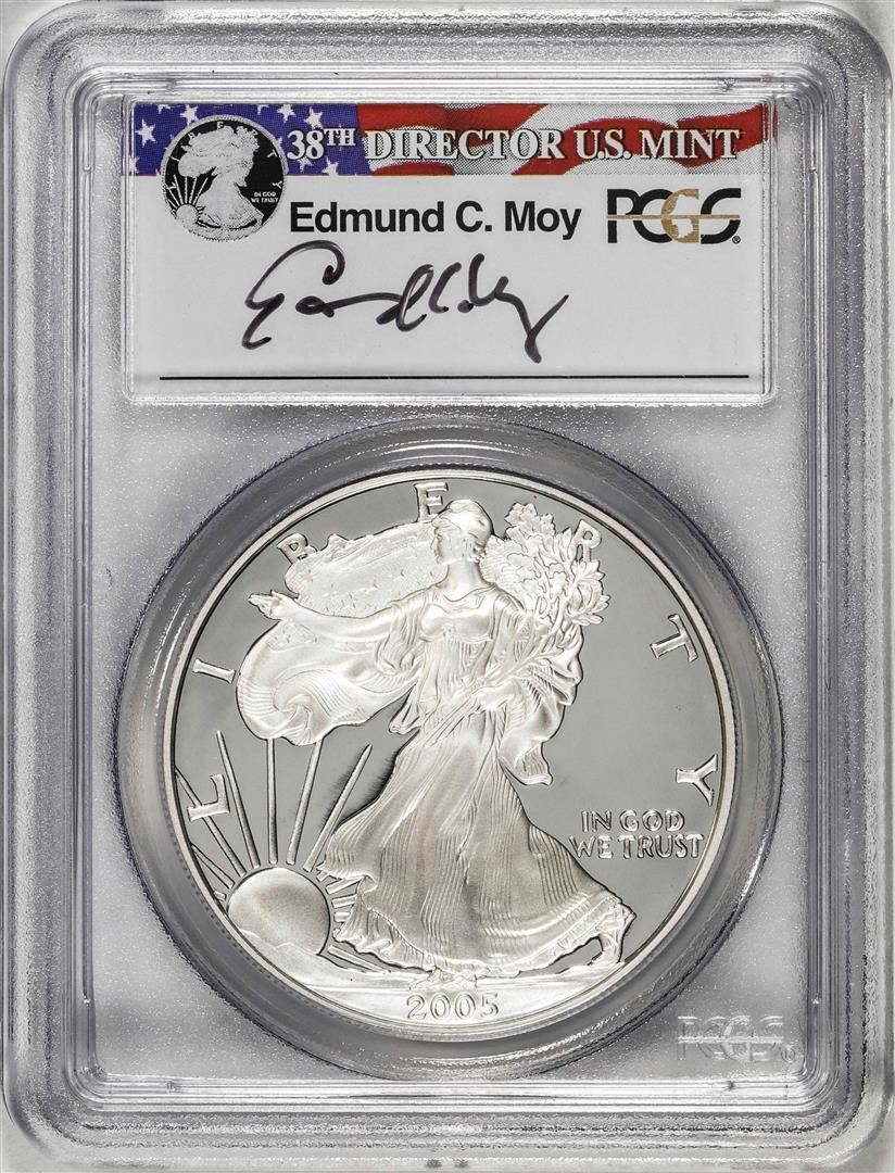 2005-W $1 Proof American Silver Eagle Coin PCGS PR69DCAM Edmund Moy Signature