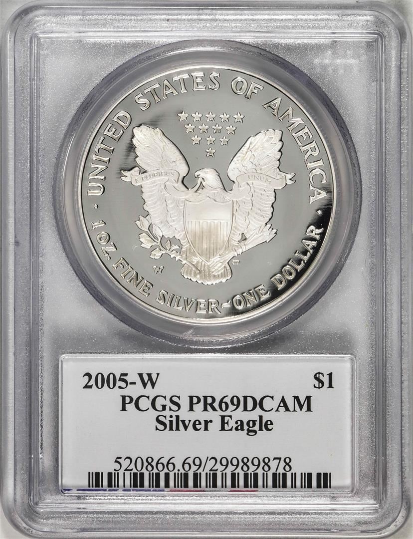 One 2005-W $1 Proof American Silver Eagle Coin PCGS PR69DCAM Edmund Moy Signature. PCGS Graded.