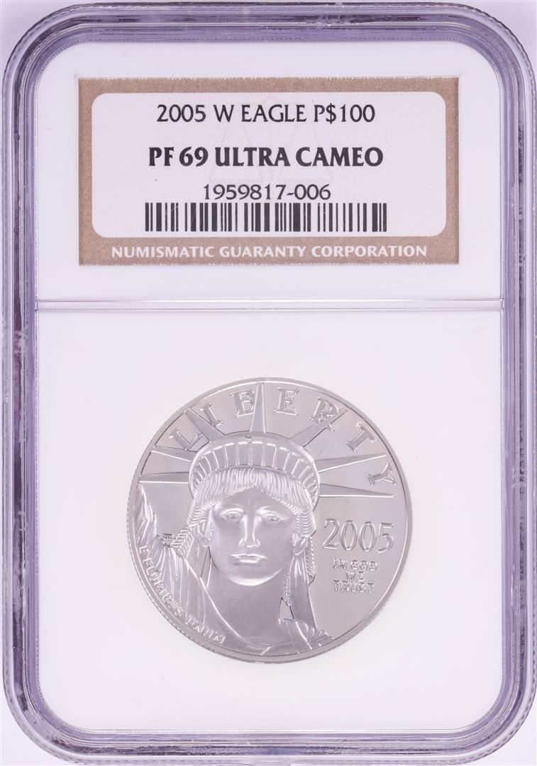 One 2005-W $100 Proof Platinum American Eagle Coin NGC PF69 Ultra Cameo. NGC Certified.
