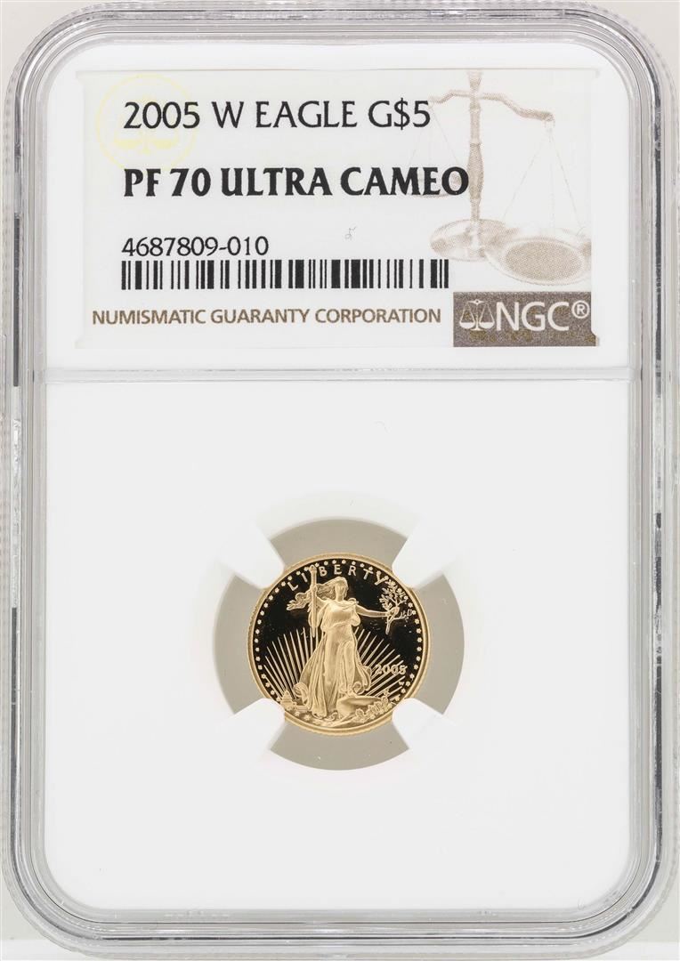 One 2005-W $5 American Gold Eagle Coin NGC PF70 Ultra Cameo. NGC Certified.