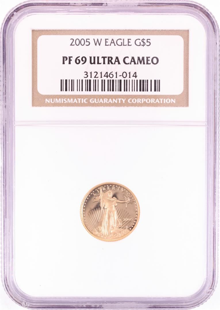 One 2005-W $5 Proof American Gold Eagle Coin NGC PF69 Ultra Cameo. NGC Certified.