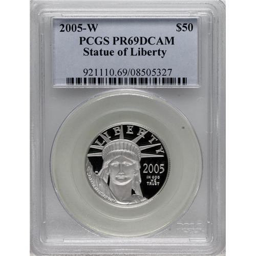 <B>2005-W $50 Half-Ounce PR69 Deep Cameo PCGS.</B></I> PCGS Population (249/20). NGC Census: (0/0). Numismedia Wsl. Price: $660. (#921110)<BR><BR><b>Shipping:</b> Coins & Currency (<a target="_blank" href="http://www.heritageauctions.com/common/shipping.php">view shipping information</a>)
