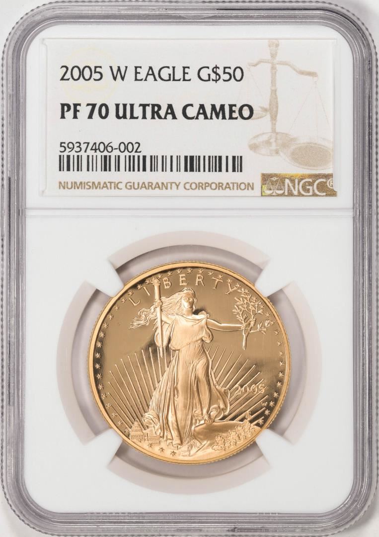 One 2005-W $50 Proof American Gold Eagle Coin NGC PF70 Ultra Cameo. NGC Certified.