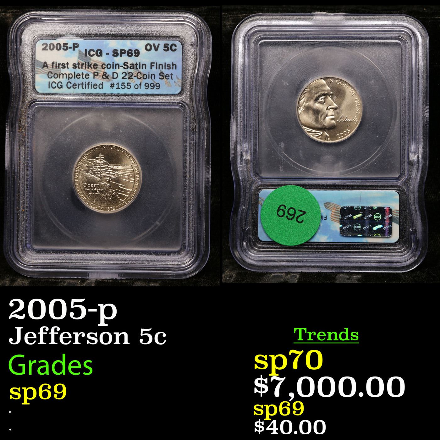 2005-p Jefferson Nickel 5c Graded sp69 By ICG.