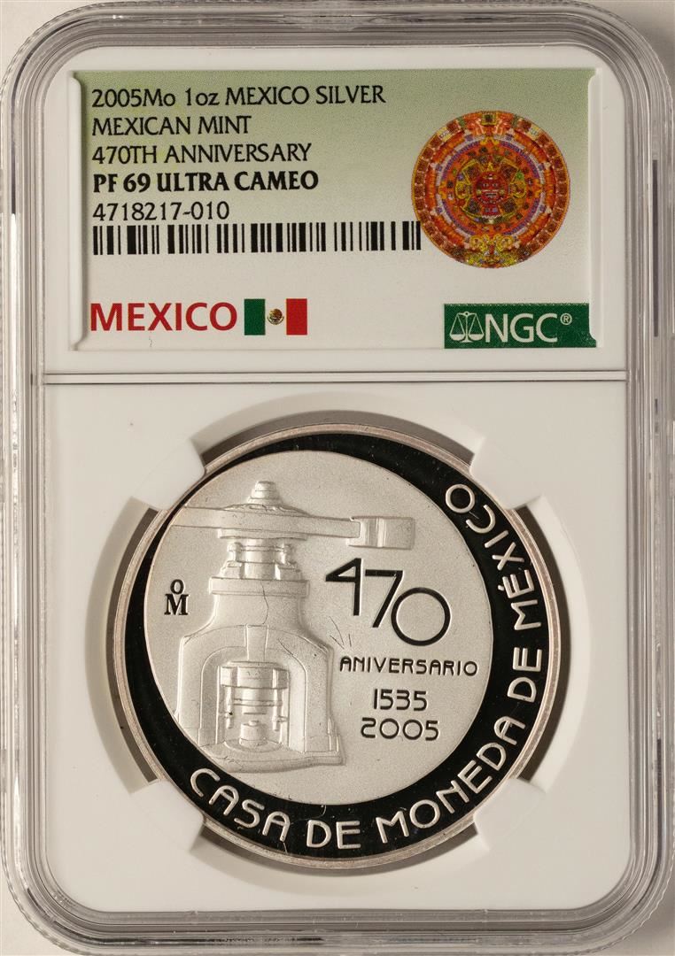 One 2005Mo Mexican Mint 470th Anniversary Silver Medal NGC PF69 Ultra Cameo. NGC Certified.