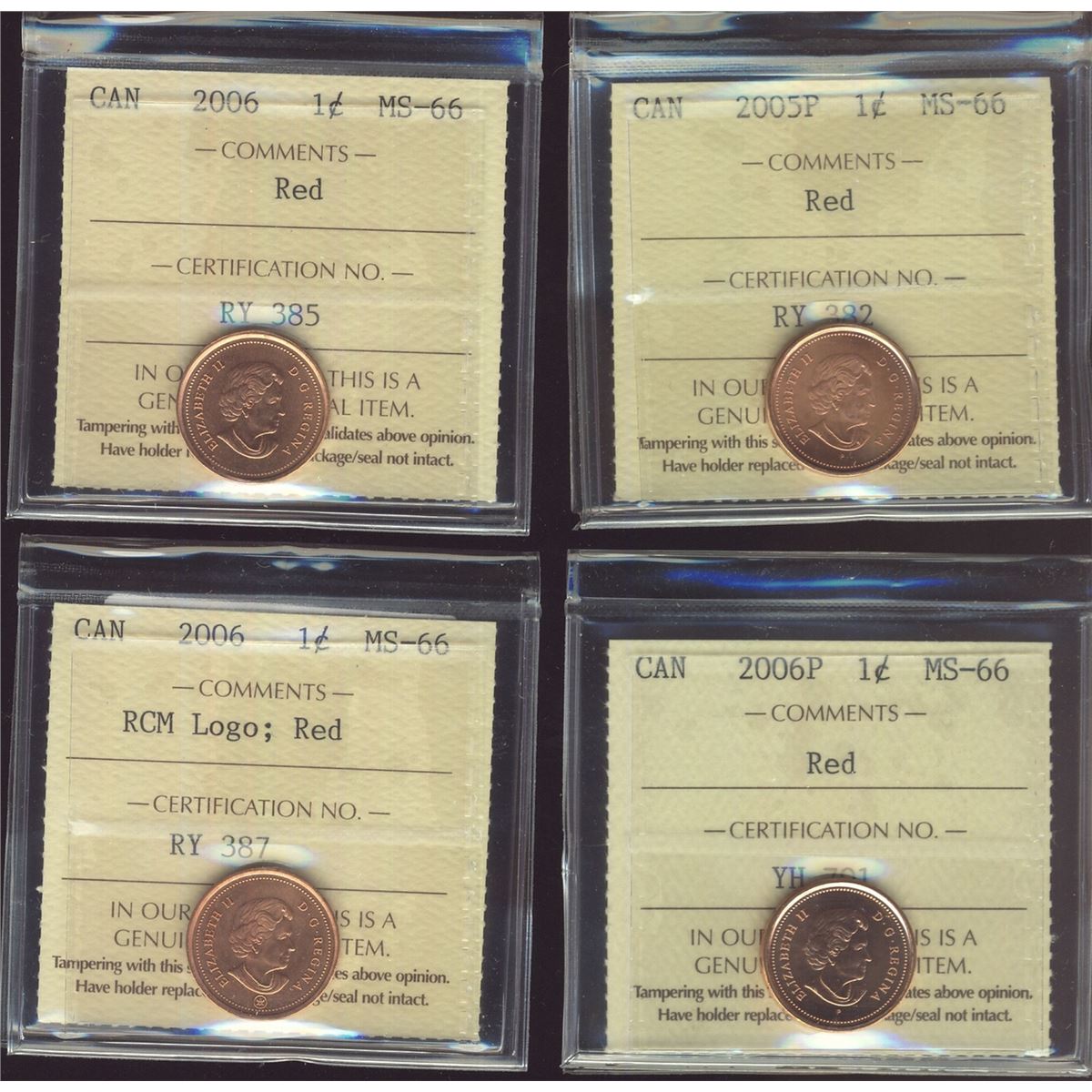 2005P, 2006, 2006 Logo & 2006P ICCS MS66RD. Lot of 4 coins.