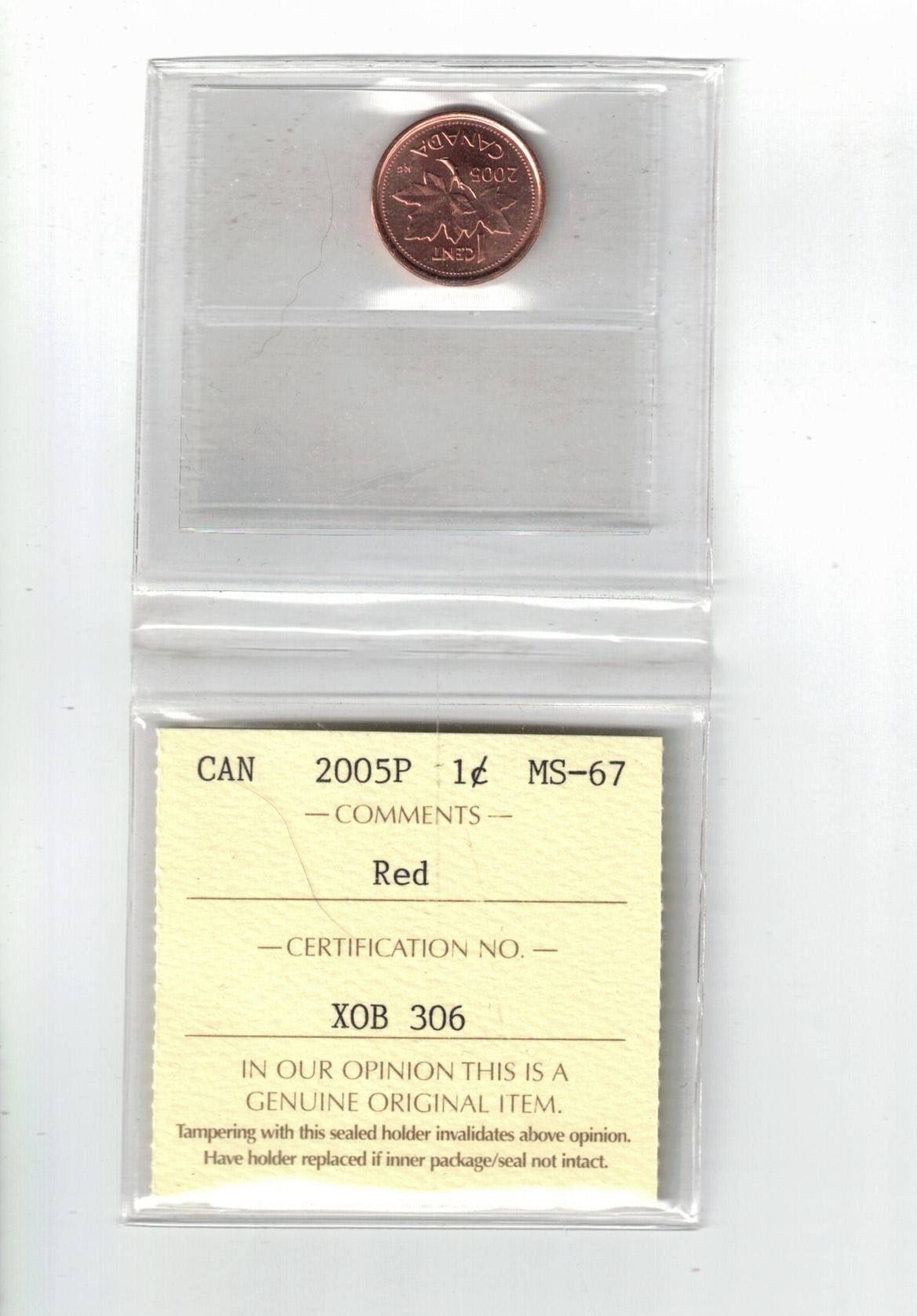 2005P Canada 1¢; Red, Certified ICCS MS67
