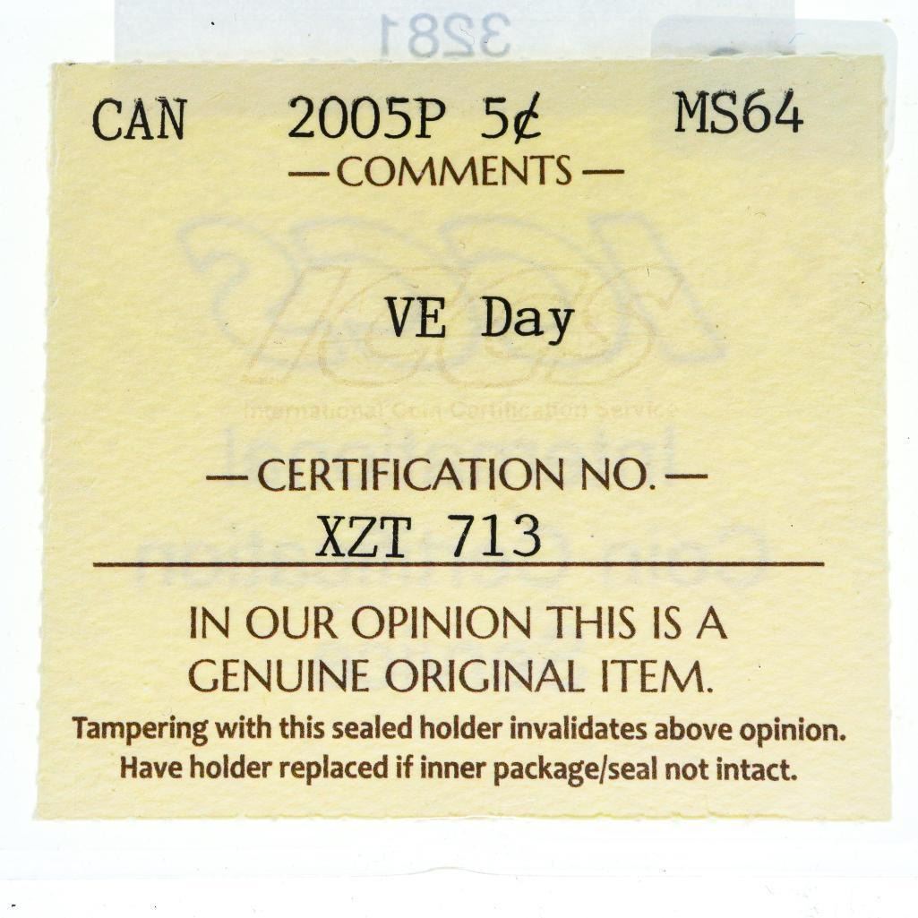 2005P Canada 5 Cents. MS64. VE Day. ICCS.