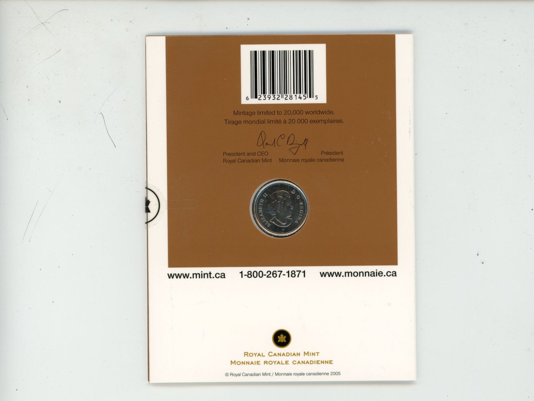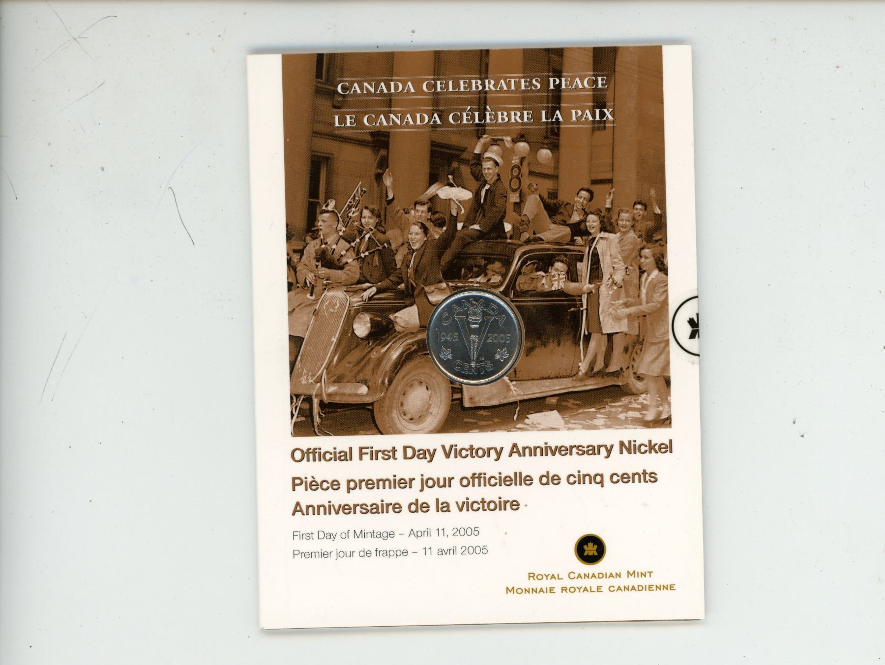2005P Official First Day Victory Anniversary Nickel. Housed in its original unopened Royal Canadian Mint packaging.