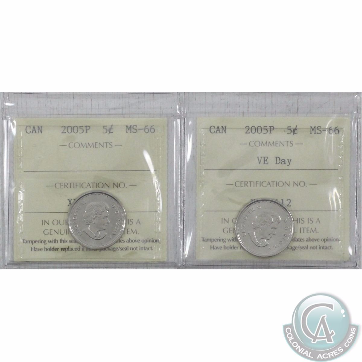 2005P Regular & 2005P VE Day Canada 5-cents Both ICCS Certified MS-66 (2pcs)