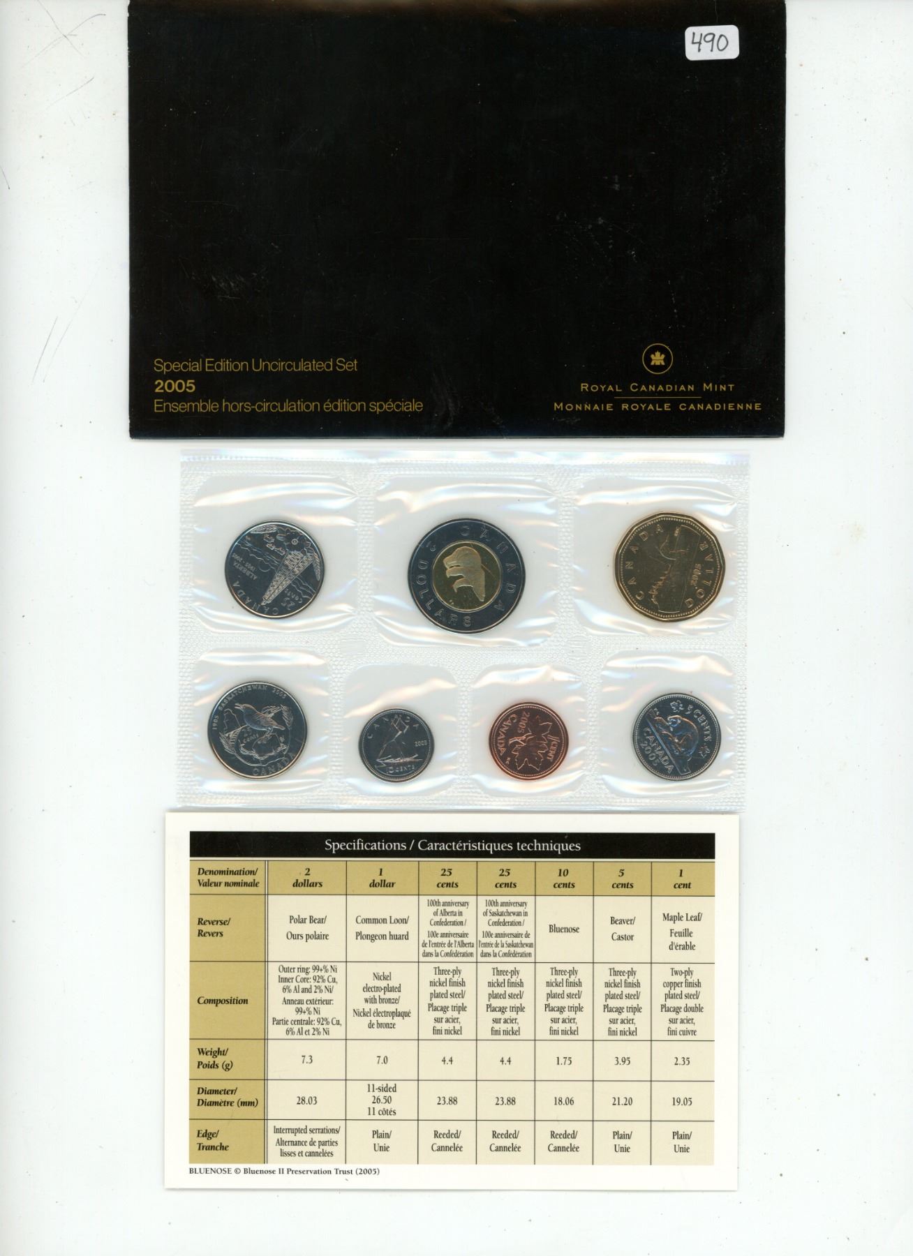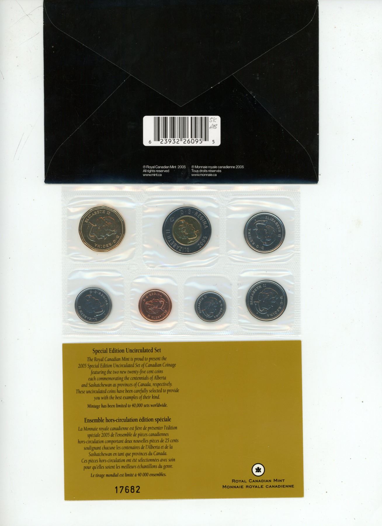 2005P Special Edition Proof Like Set. Includes Centennial 25 Cents for Alberta & Saskatchewan. 7-coin set.