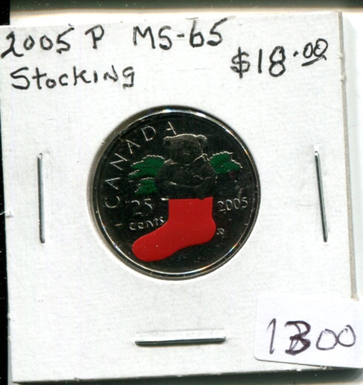 2005P Teddy Bear in Red Stocking 25 Cents. BU. Nice.