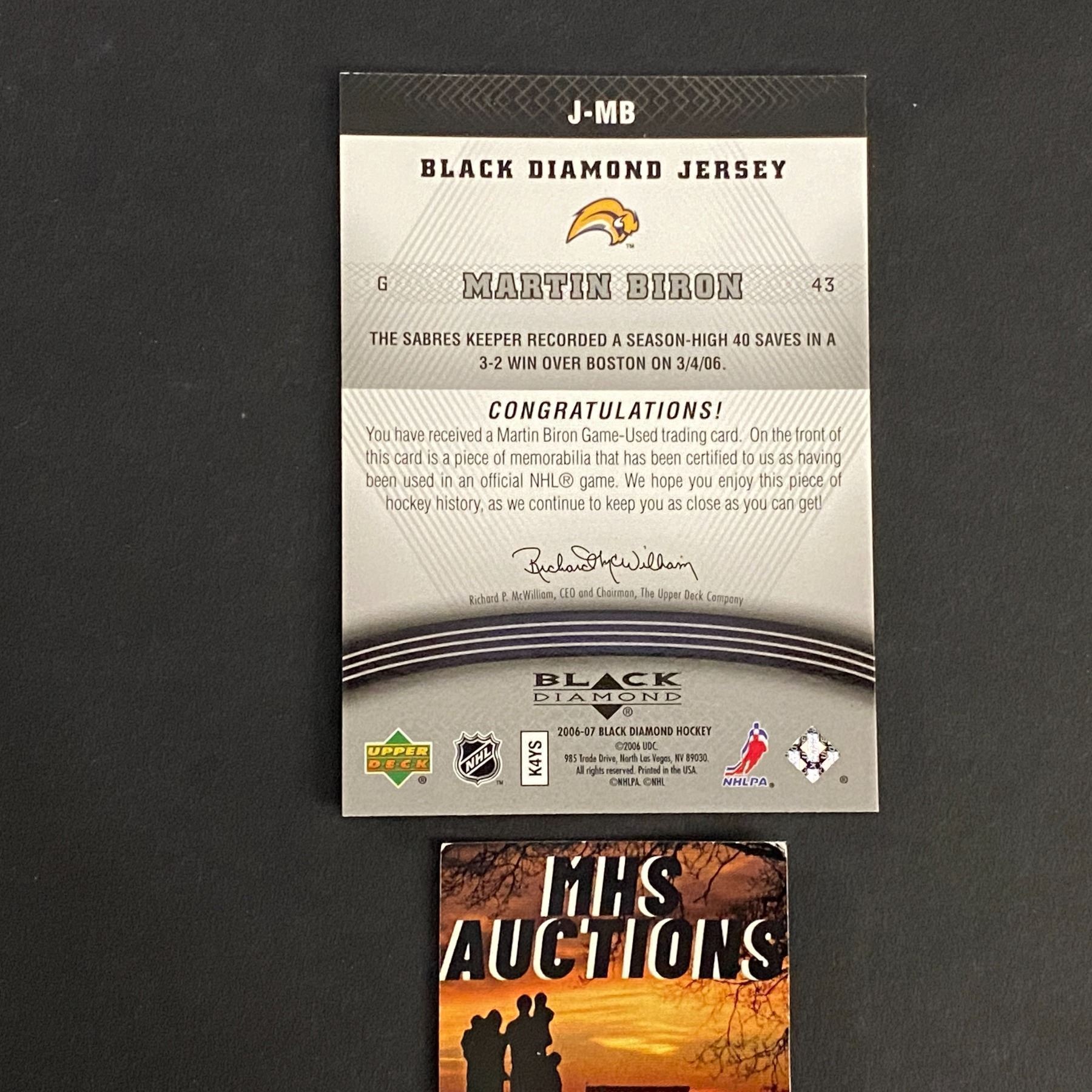 2006-07 BLACK DIAMOND MARTIN BIRON JERSEY CARD