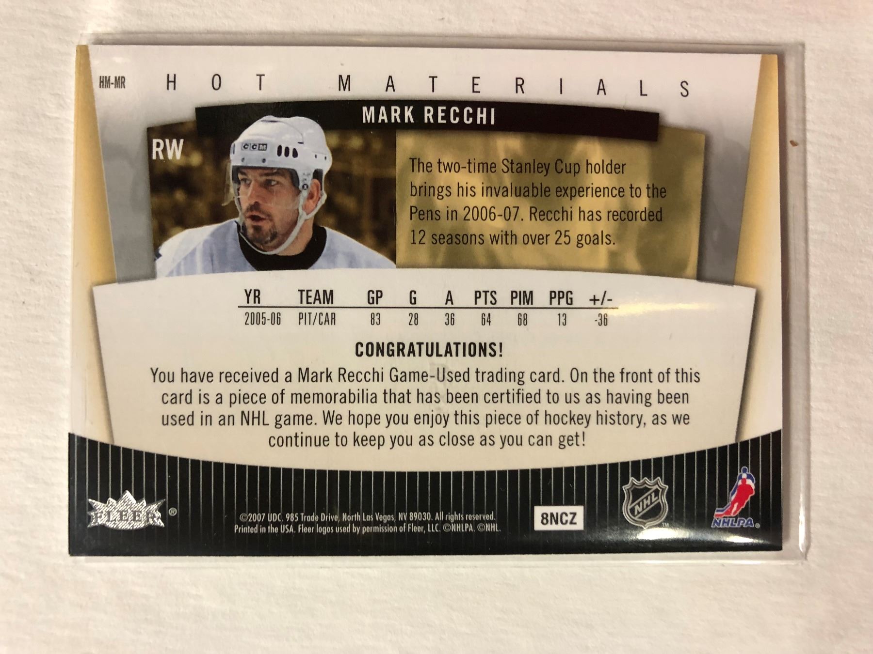 2006-07 FLEER HOT MATERIALS MARK RECCHI HOCKEY CARD