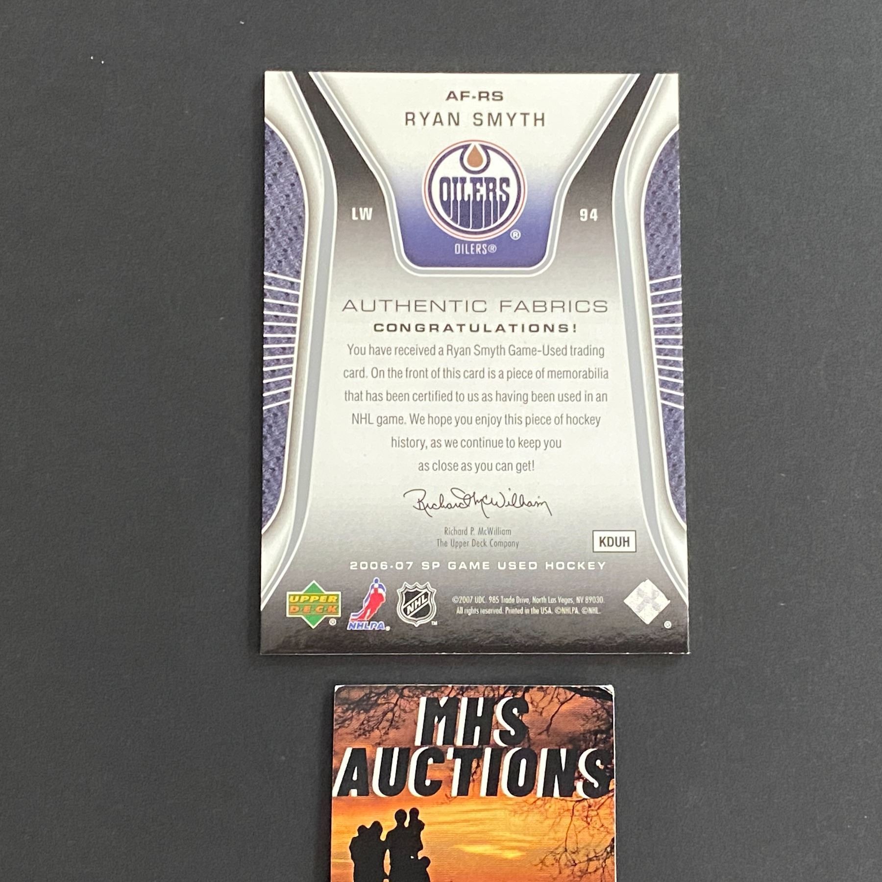 2006-07 SP GAME USED RYAN SMYTH JERSEY CARD