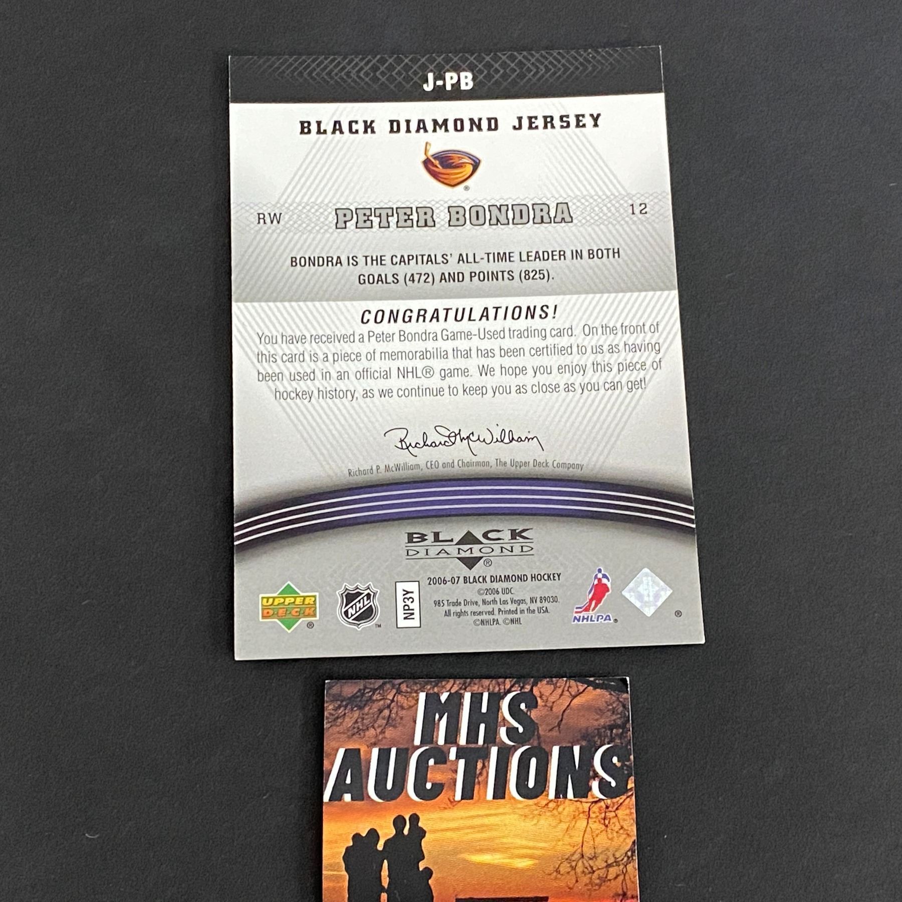 2006-07 U.D BLACK DIAMOND HOCKEY PETER BONDRA JERSEY CARD