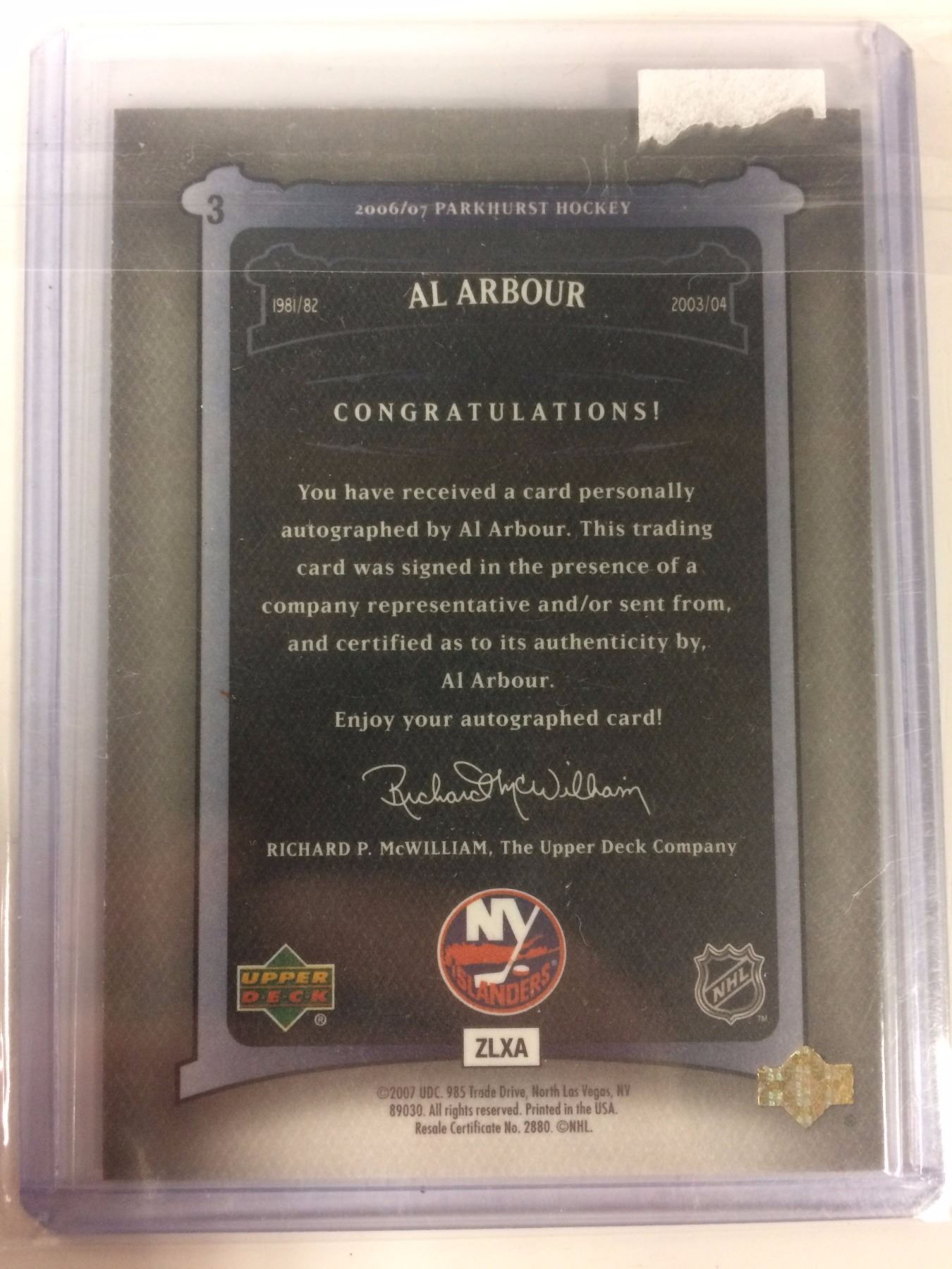 Autographed #3 Al Arbour