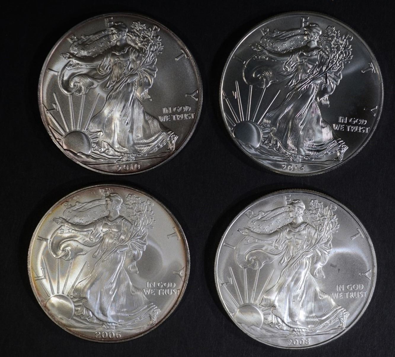 2006, 08, 10 & 14 BU AMERICAN SILVER EAGLES