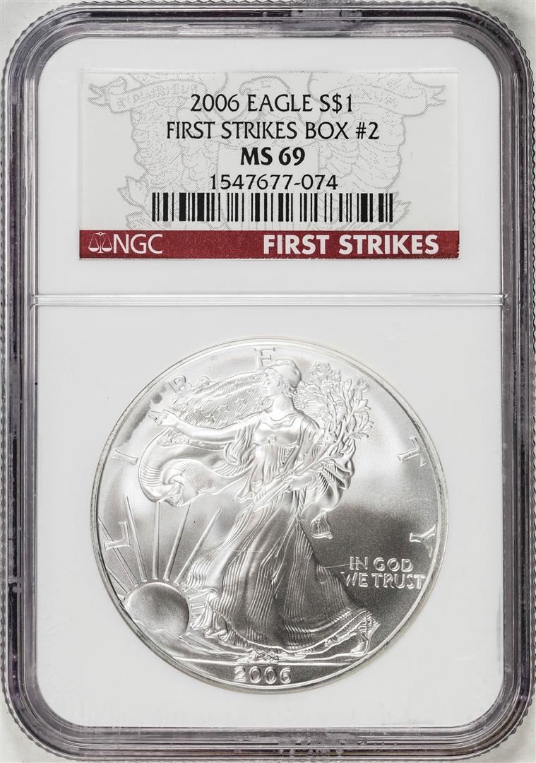 2006 $1 American Silver Eagle Coin NGC MS69 Box #2 First Strikes