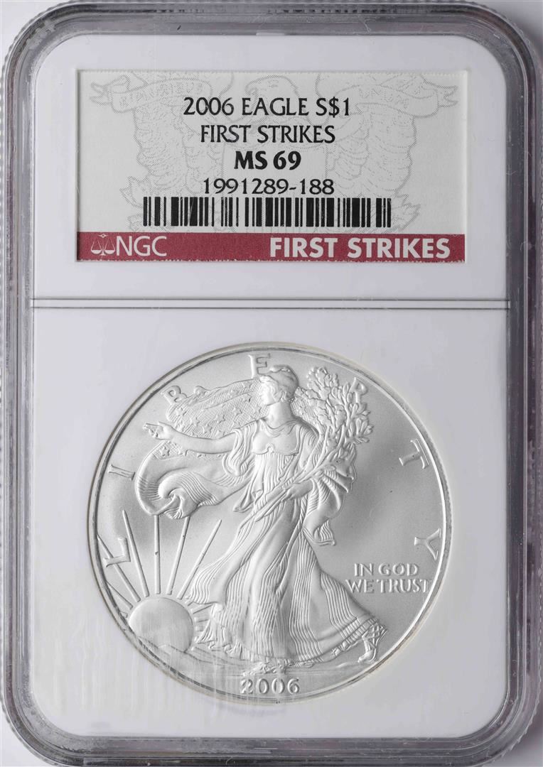 One 2006 $1 American Silver Eagle Coin NGC MS69 First Strikes. NGC Certified.