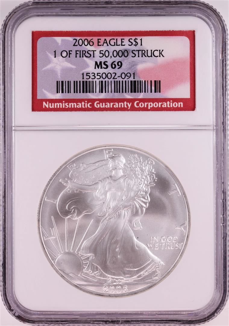 One 2006 $1 American Silver Eagle Coin NGC MS69. NGC Certified.