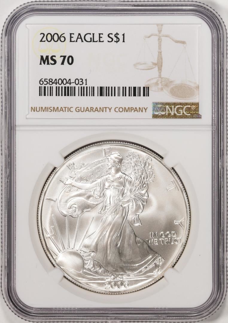One 2006 $1 American Silver Eagle Coin NGC MS70. NGC Certified.
