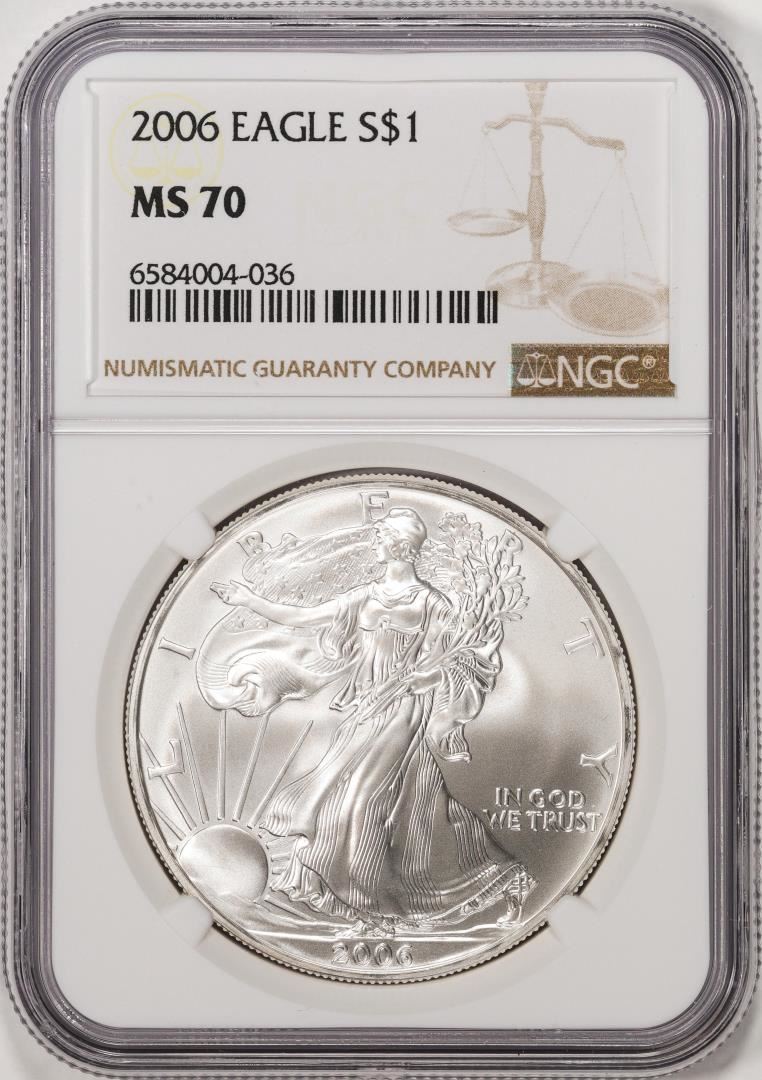 One 2006 $1 American Silver Eagle Coin NGC MS70. NGC Certified.