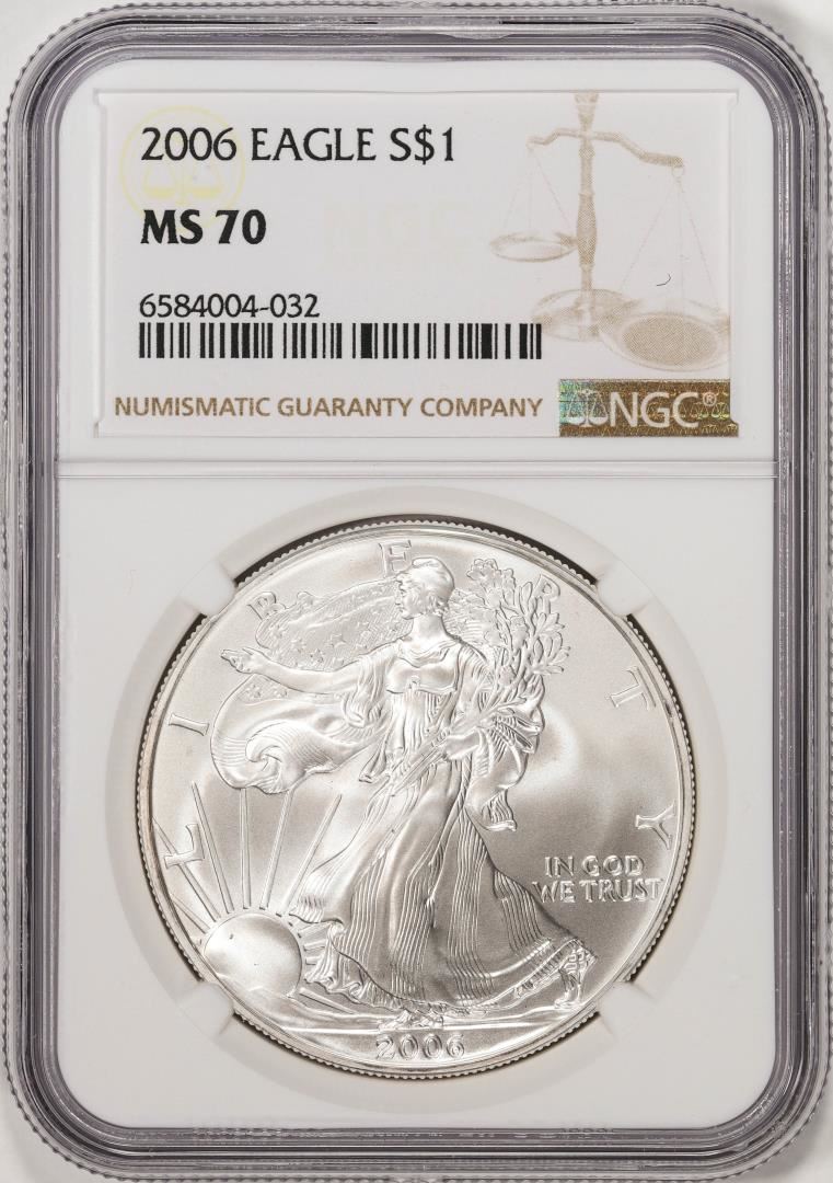 One 2006 $1 American Silver Eagle Coin NGC MS70. NGC Certified.