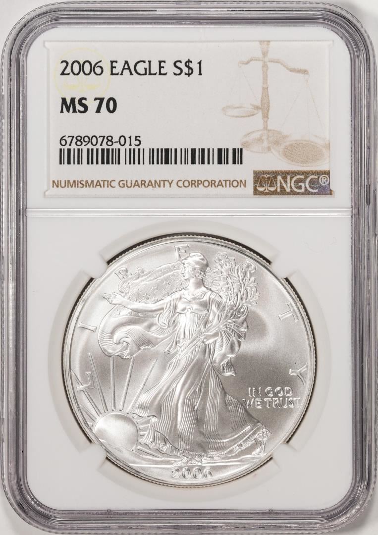 One 2006 $1 American Silver Eagle Coin NGC MS70. NGC Certified.