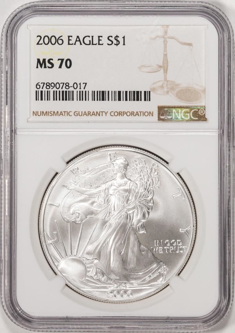 One 2006 $1 American Silver Eagle Coin NGC MS70. NGC Certified.