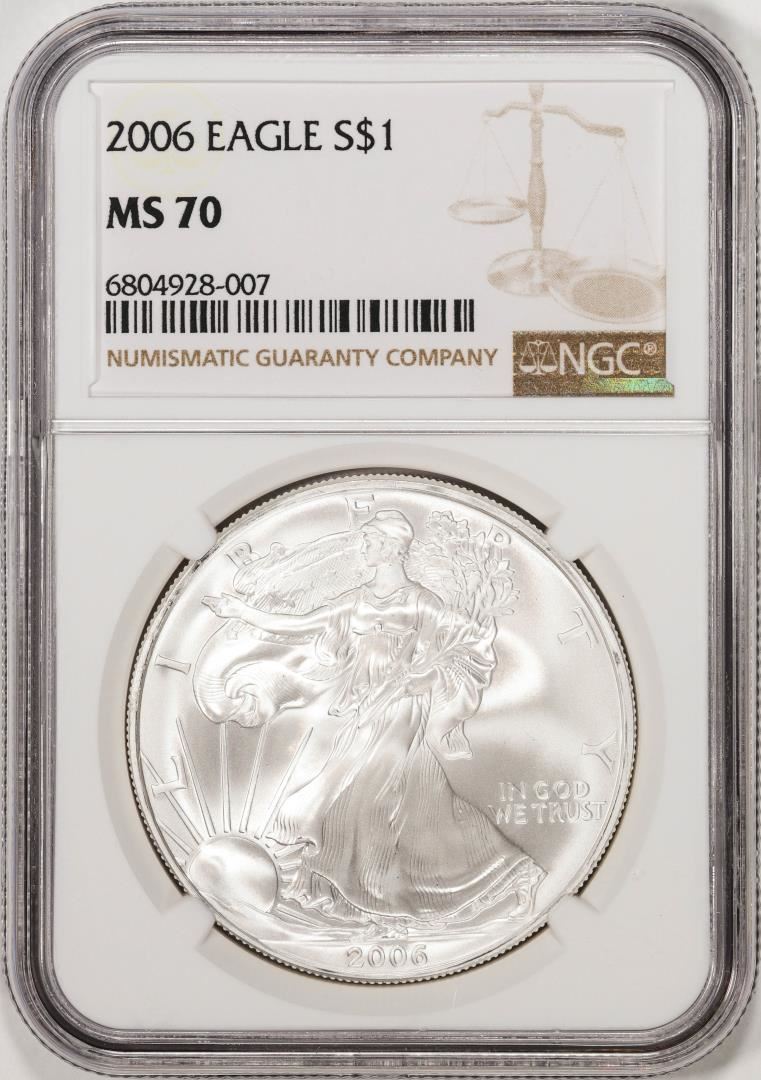 One 2006 $1 American Silver Eagle Coin NGC MS70. NGC Certified.