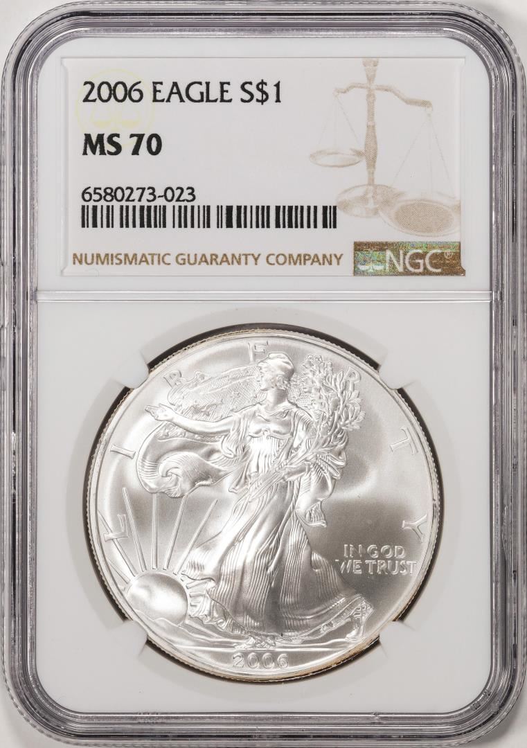 One 2006 $1 American Silver Eagle Coin NGC MS70. NGC Certified.