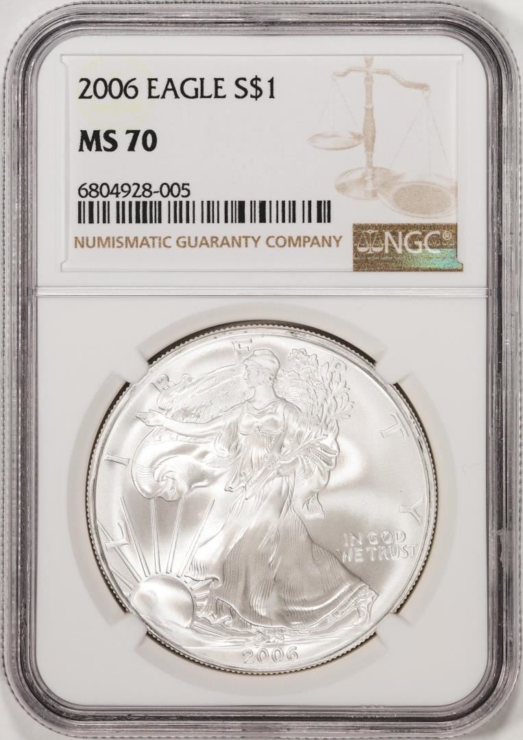 One 2006 $1 American Silver Eagle Coin NGC MS70. NGC Certified.