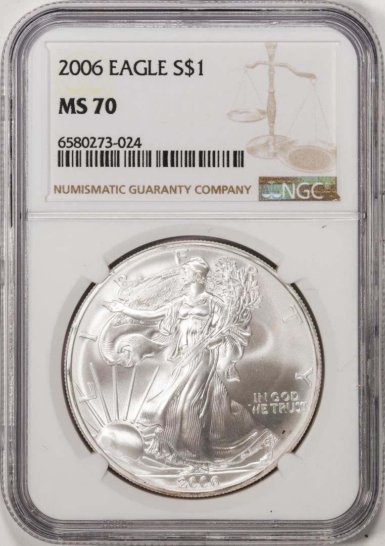 One 2006 $1 American Silver Eagle Coin NGC MS70. NGC Certified.