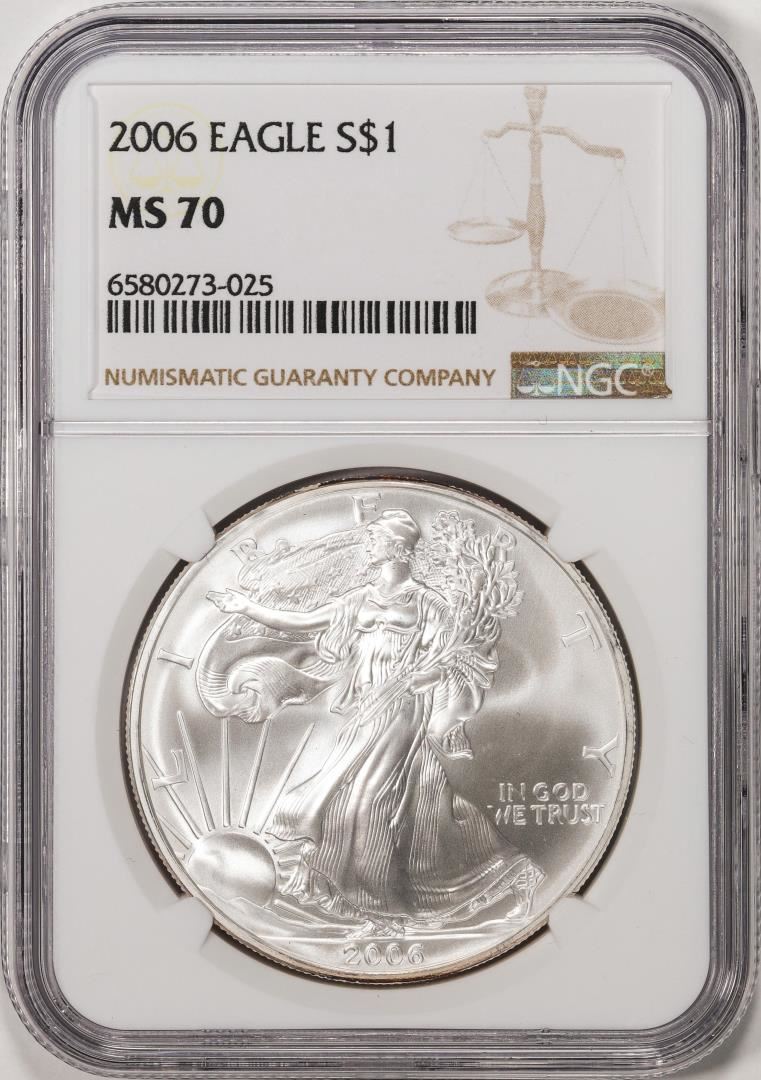 One 2006 $1 American Silver Eagle Coin NGC MS70. NGC Certified.