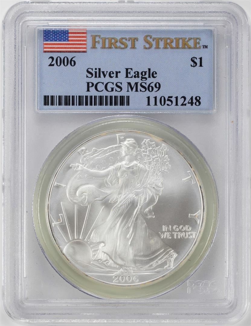One 2006 $1 American Silver Eagle Coin PCGS MS69 First Strike. PCGS Graded.