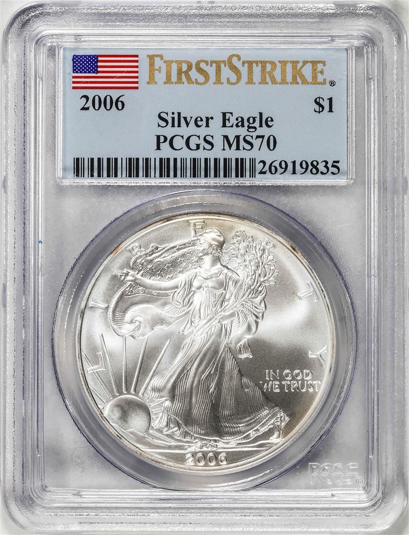 One 2006 $1 American Silver Eagle Coin PCGS MS70 First Strike. PCGS Graded.