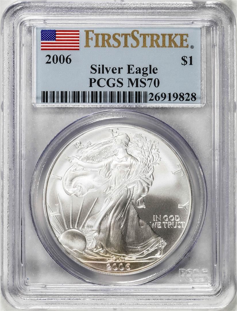 One 2006 $1 American Silver Eagle Coin PCGS MS70 First Strike. PCGS Graded.