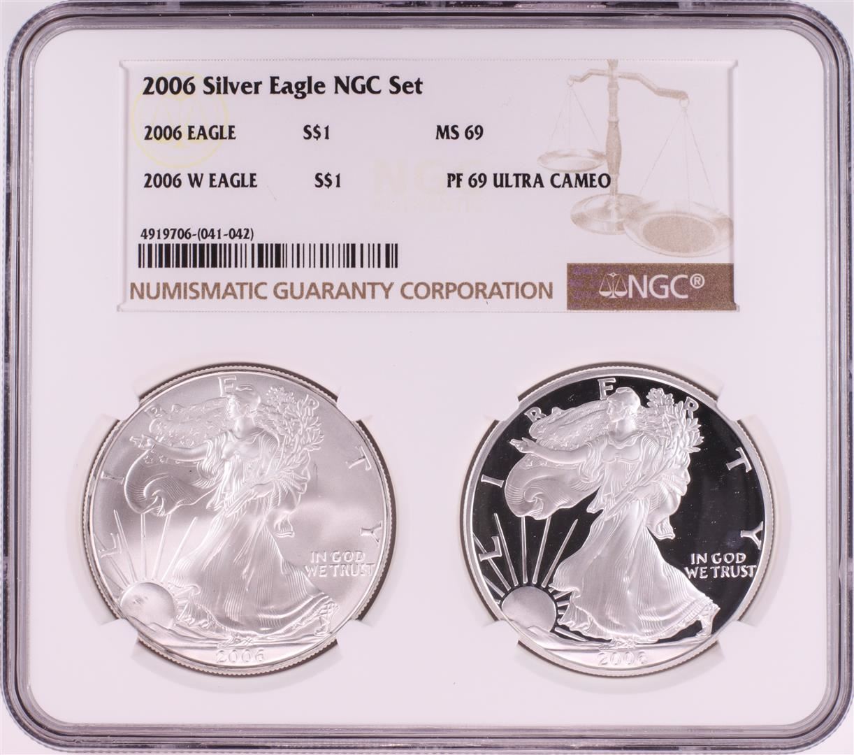 2006 $1 American Silver Eagle Coin Set NGC MS69/PF69 Ultra Cameo