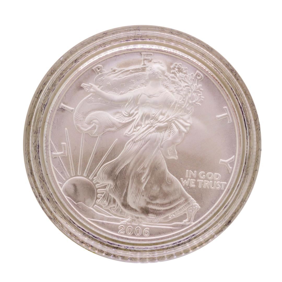 One 2006 $1 Burnished American Silver Eagle Coin with Box & COA.