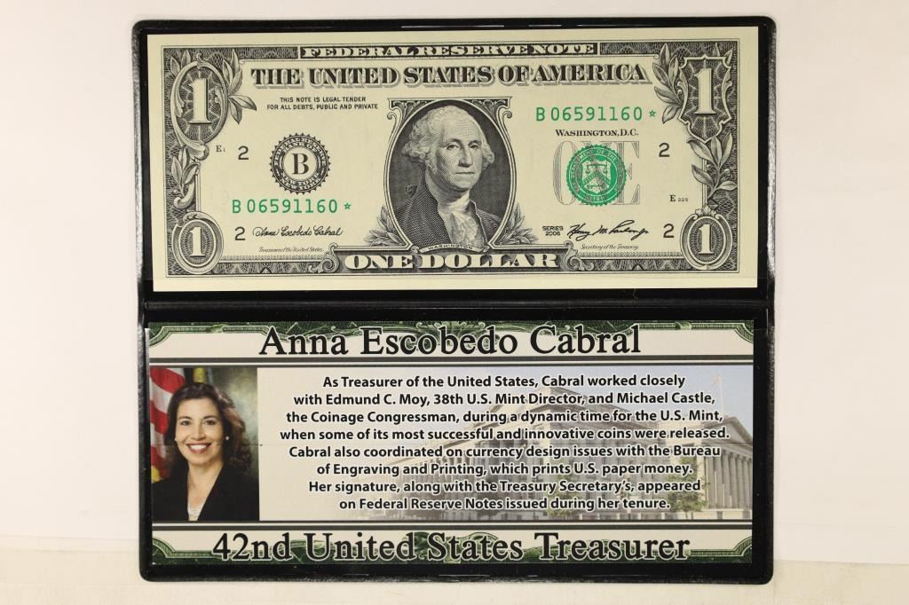 CABRAL, THE 42ND US TREASURER, CRISP UNC IN BLACK FOLIO