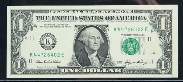 2006, $1 Federal Reserve Note. Error. PCGS Currency