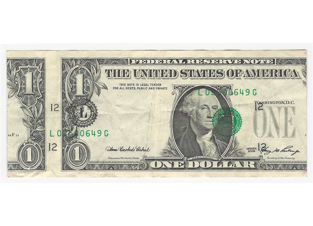 One 2006 $1 Federal Reserve Note Major Shift & Misalignment ERROR.