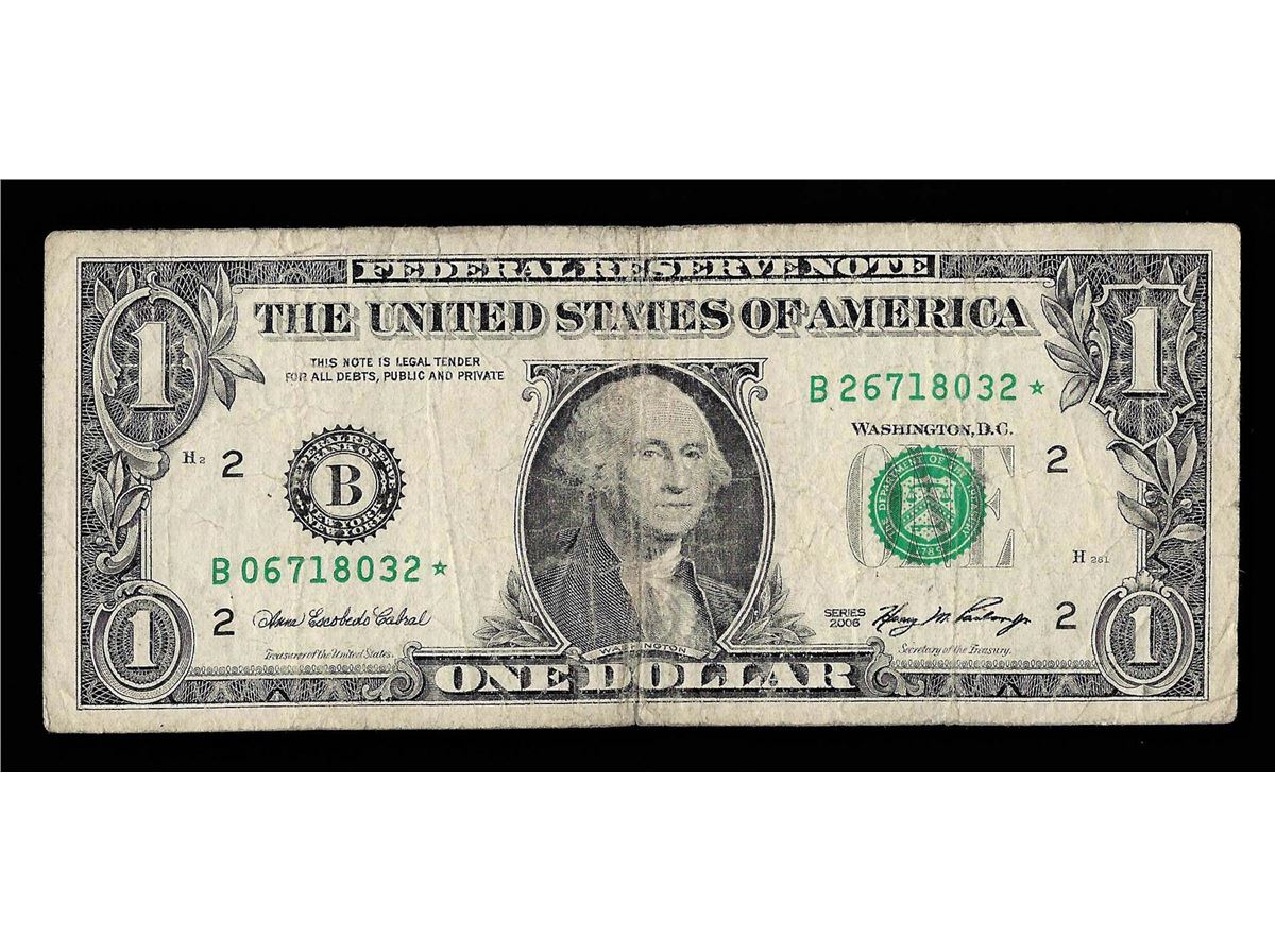 One 2006 $1 Federal Reserve Note Star ERROR Mismatching Serial Number.
