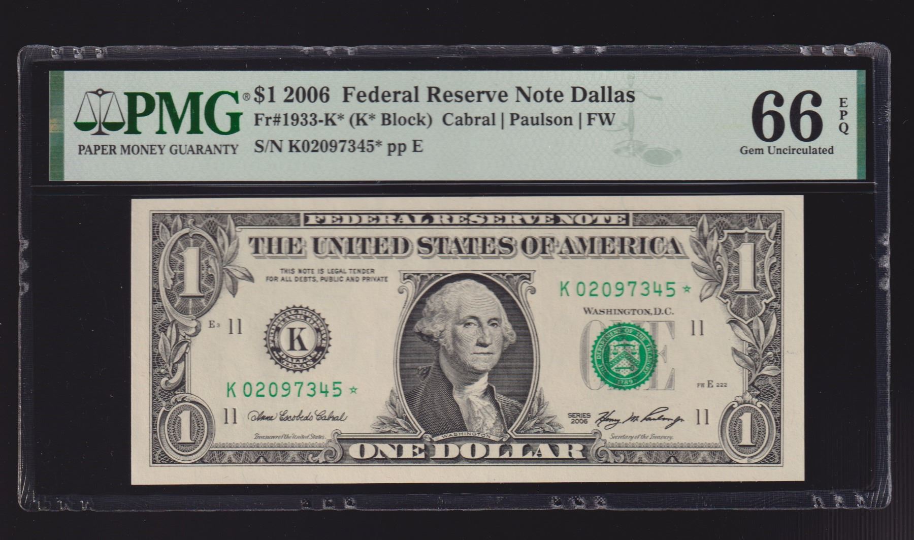 One 2006 $1 STAR Dallas FRN PMG 66EPQ.