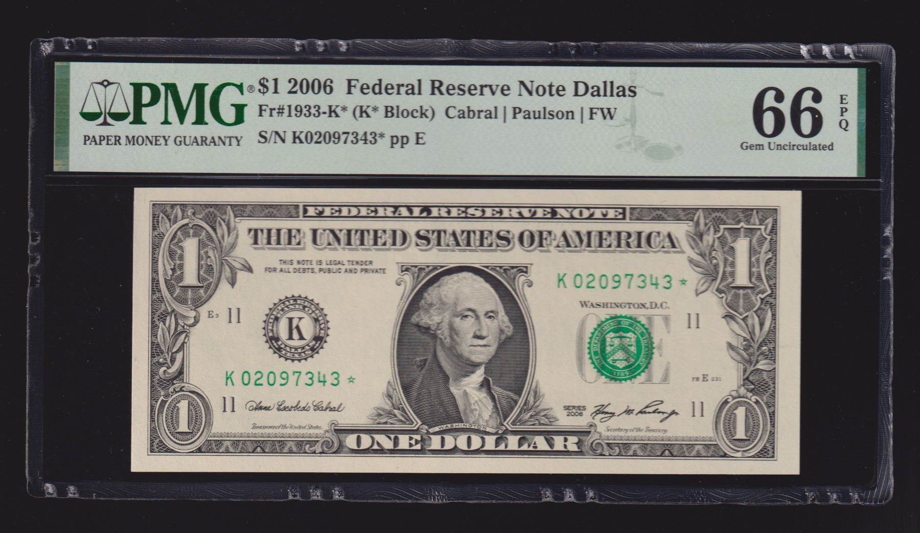 One 2006 $1 STAR Dallas FRN PMG 66EPQ.
