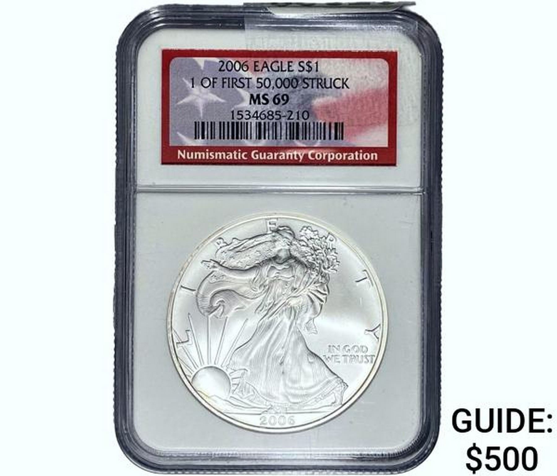 2006 $1 Silver Eagle 1st of 50,000 Struck NGC MS69