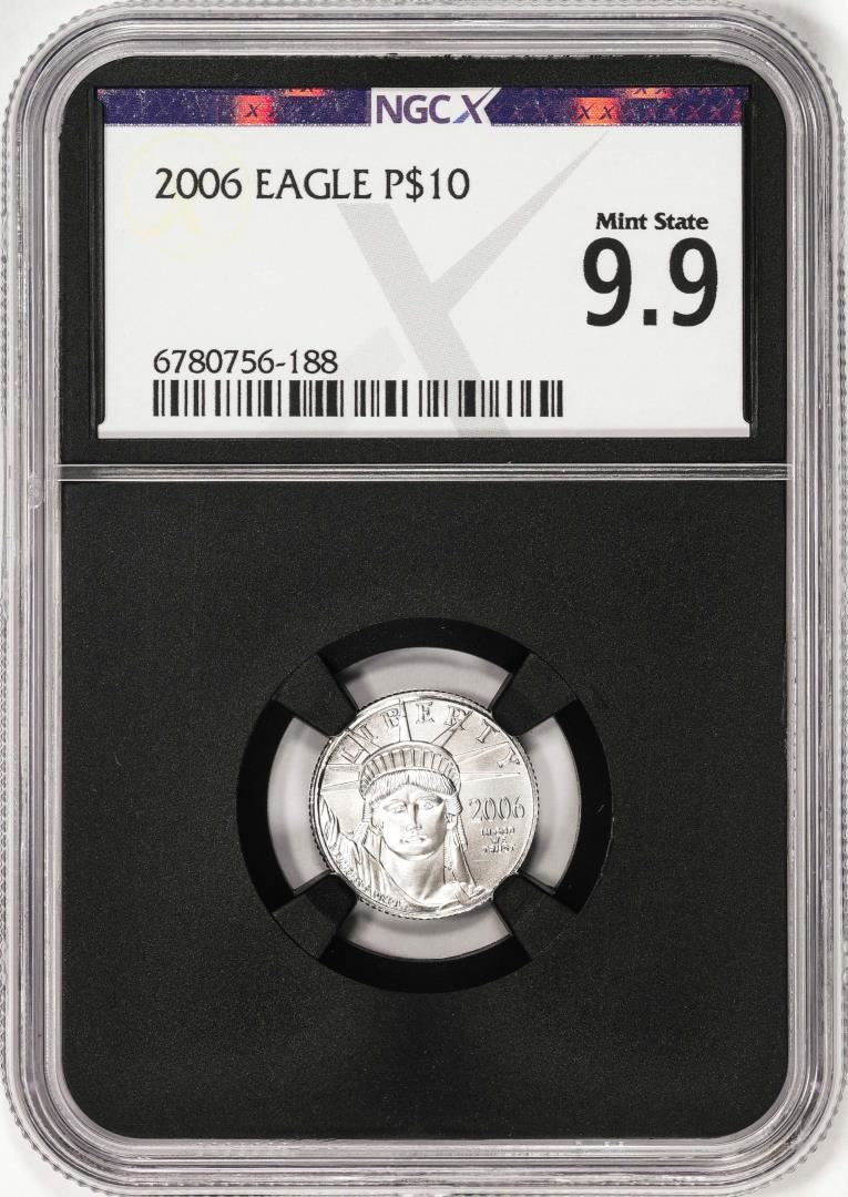 One 2006 $10 American Platinum Eagle Coin NGCX Mint State 9.9 . NGC Certified.