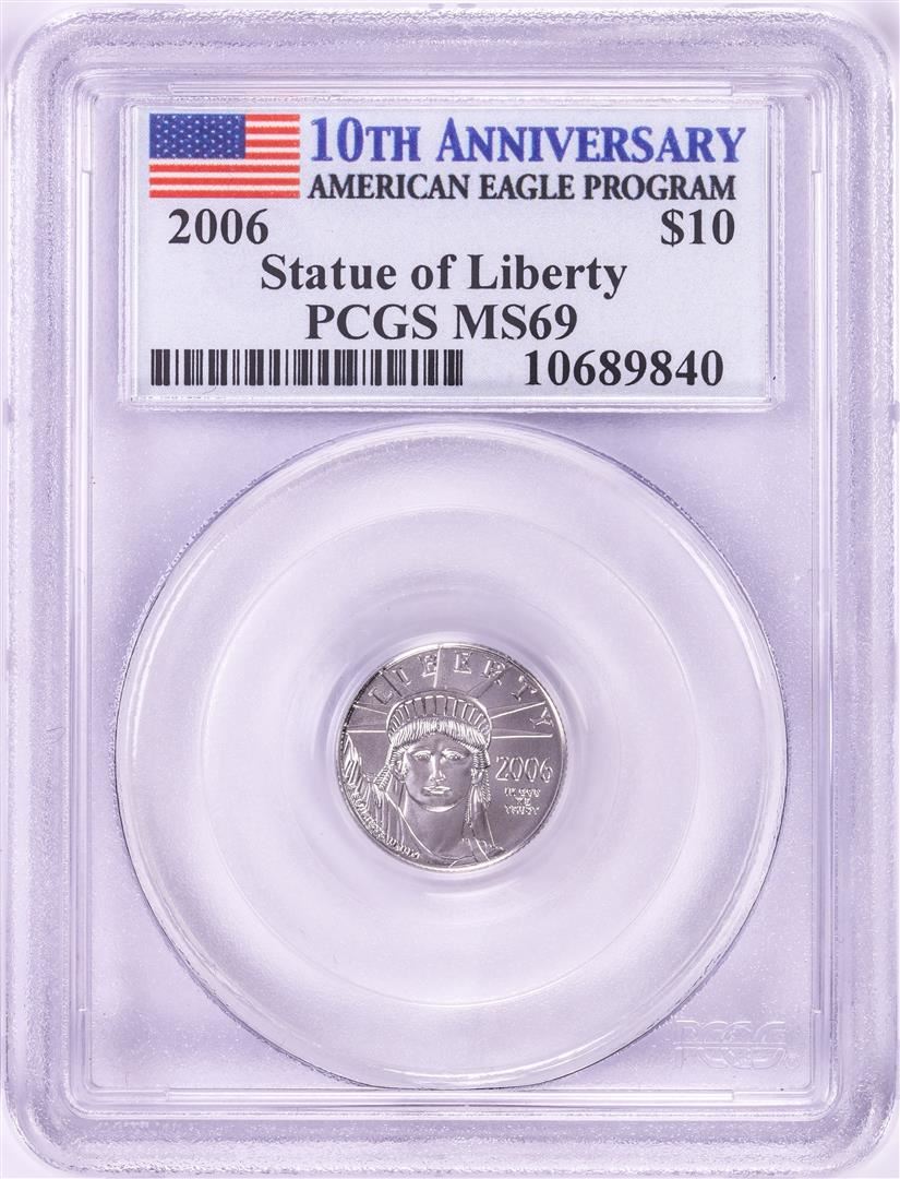 One 2006 $10 American Platinum Eagle Coin PCGS MS69 First Strike. PCGS Graded.