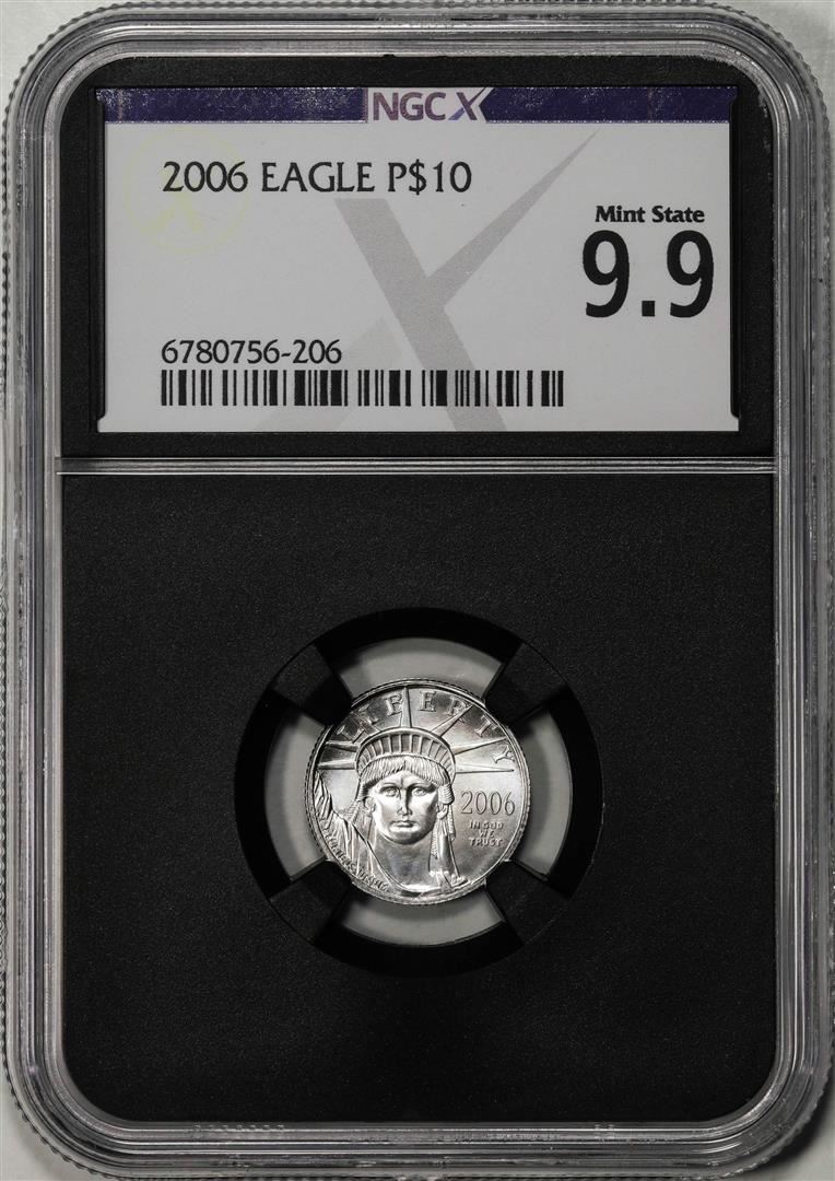 One 2006 $10 Platinum American Eagle Coin NGCX Mint State 9.9. NGCX Certified.